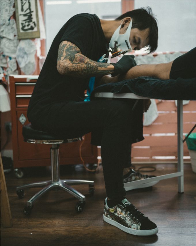 Introducing the tri-party collaboration between Puma x atmos x Three Tides Tattoo