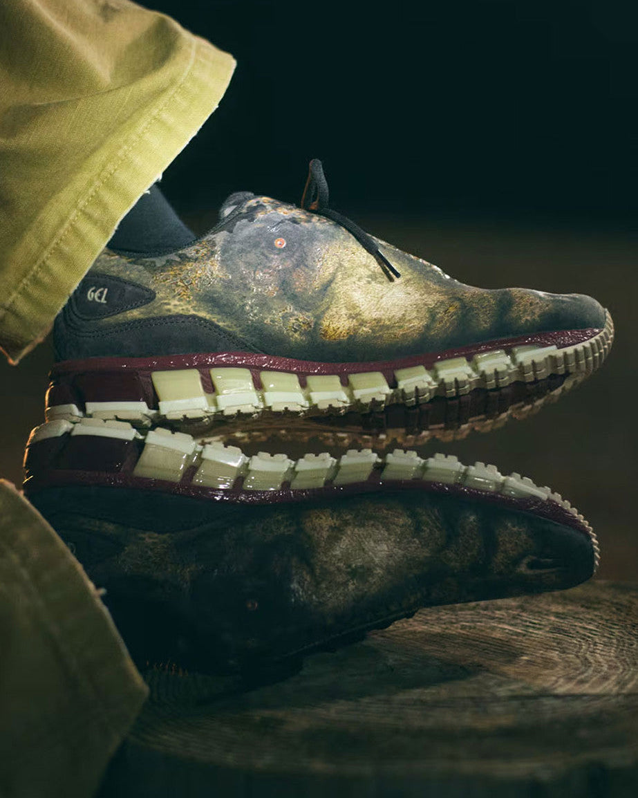 ASICS teams up with doublet to present a playful new sneaker collection inspired by the world of the Jurassic period. Featuring a bold dinosaur graphic across the upper, 3D-printed reptile-like textures and sculpted polyurethane details, the design brings a rising dinosaur head to life while housing ASICS’ advanced sports technology beneath. Finished with a sole inspired by dinosaur teeth and gums, the pair transforms everyday steps into an imaginative, interactive experience.