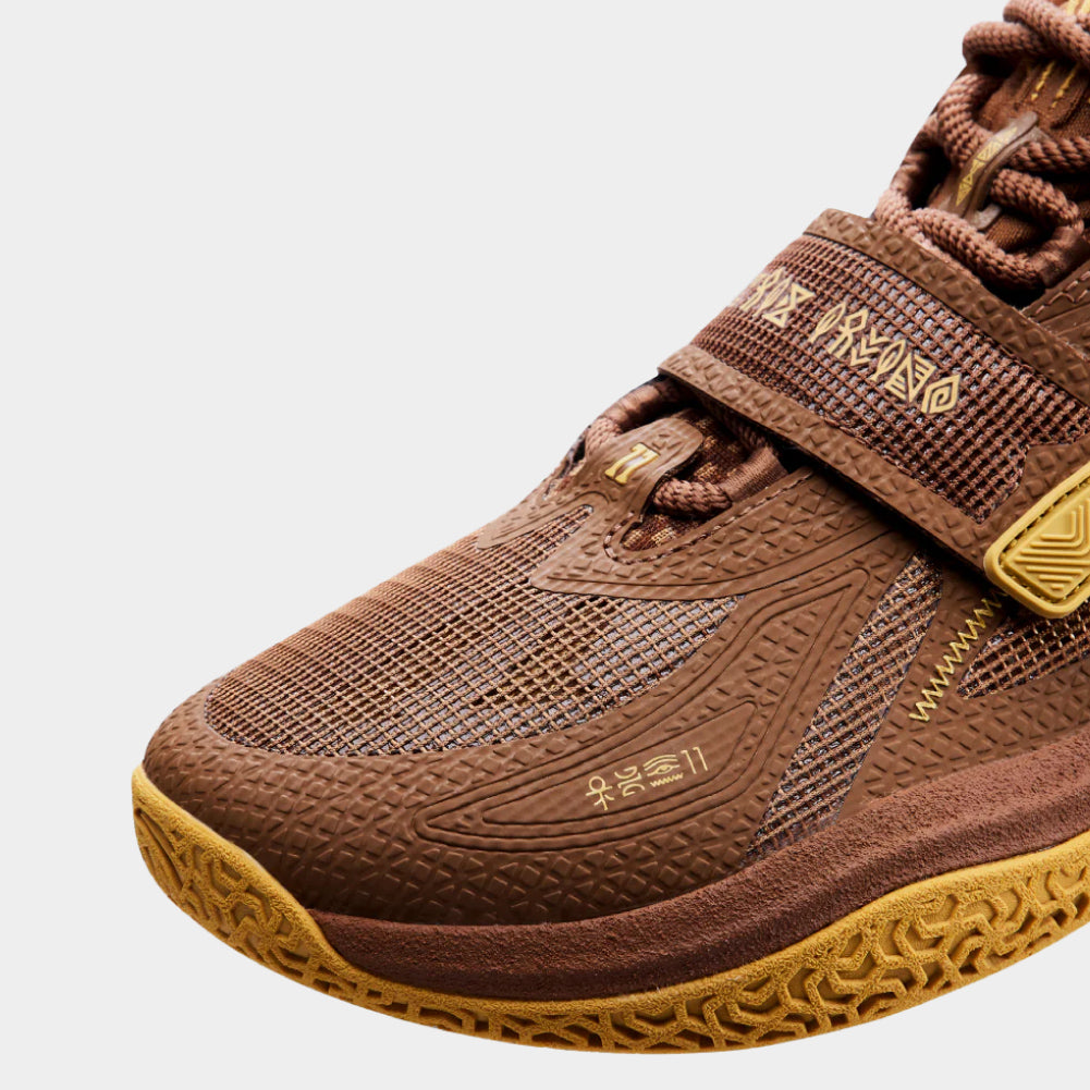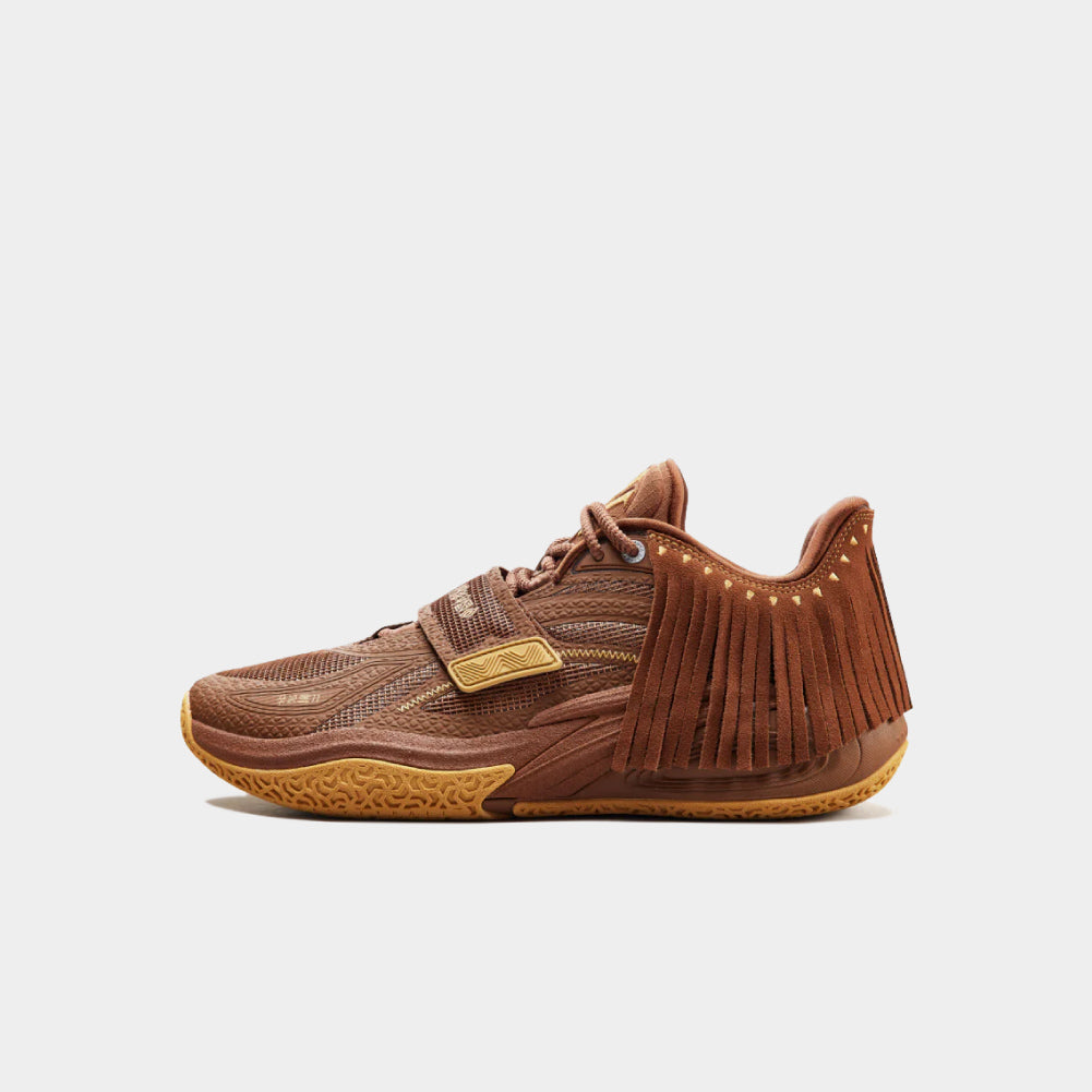 The ANTA KAI 1 “Chief Hélà” pays homage to Kyrie's Native American heritage and honors his gifted Lakota name meaning “Little Mountain”.