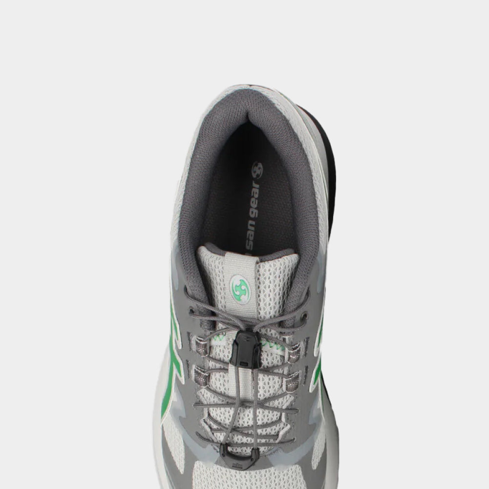 Dynamic lines from our early trail running archive are met with technical welding and no-sew elements. It also incorporates a speed lacing system that makes the shoes easier to put on and take off.