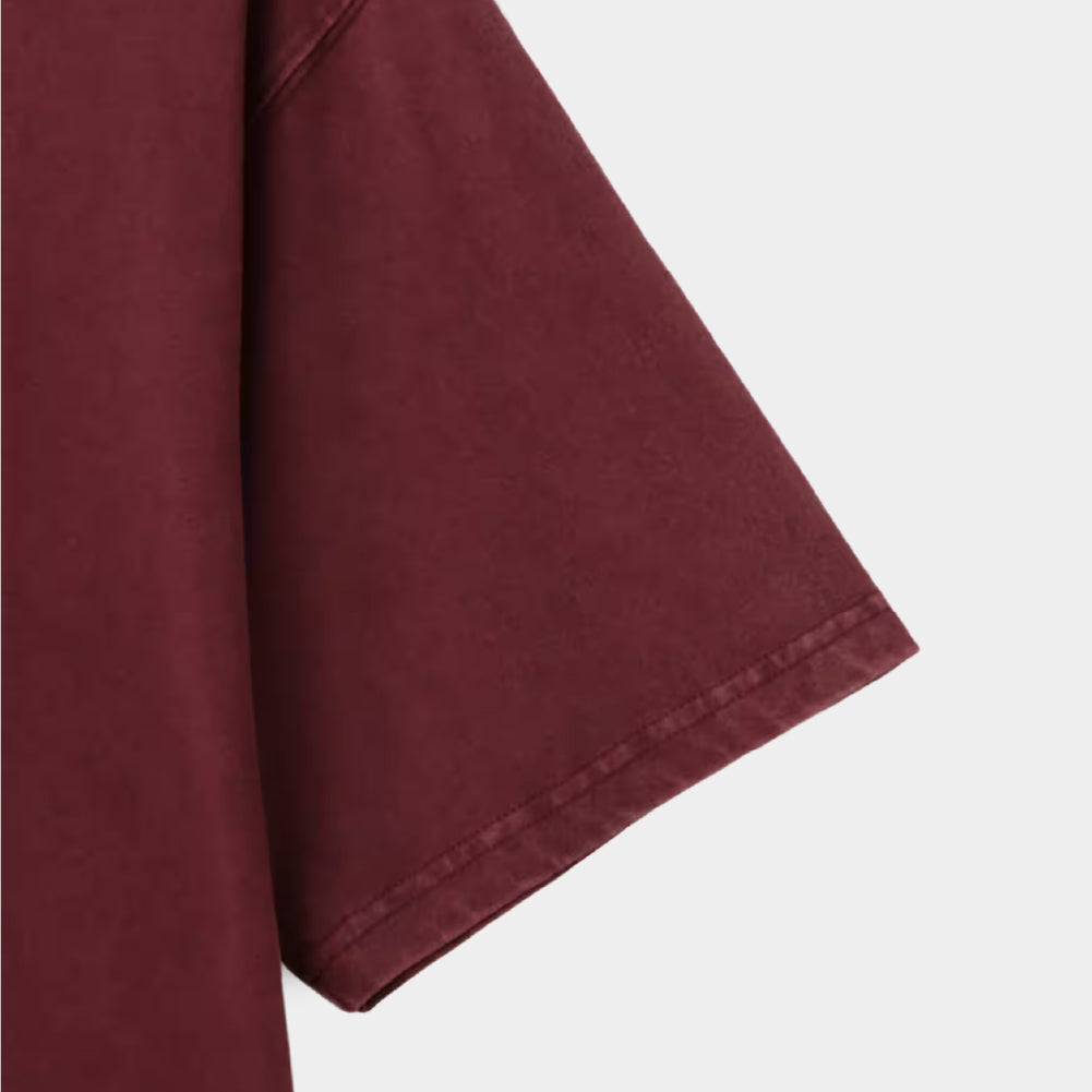 This sulfur dyed T-shirt features an "atmosphere" logo embroidered on the front. The sulfur dyeing process allows for a unique, deeper color than standard dyeing.