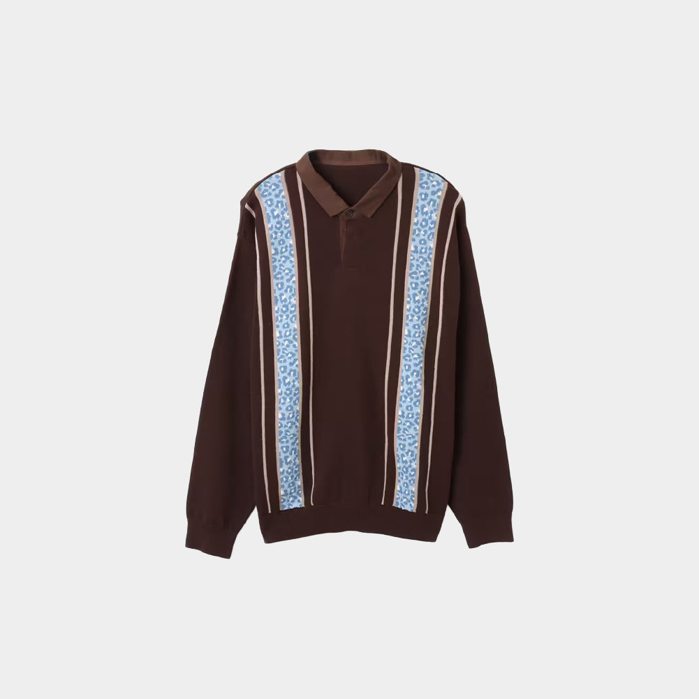 This knit polo shirt features a leopard print on the front, partially jacquard-trimmed. Made from a soft, comfortable cotton knit, it's comfortable to wear. It's also durable and less likely to pill than synthetic fibers.