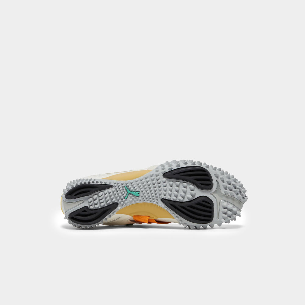 First released in 1999, the Mostro has become one of PUMA's best-selling shoes ever. Affectionally named after the Italian word for "monster", it was originally inspired by two sports shoes – a sprinting spike from 1968 and a surfing shoe from the 80s. For those who dare to be bold, this latest version takes its name from the German prefix "Ur" which means something old or original. It has a somewhat more aggressive look with slightly longer spikes and a open mesh upper.
