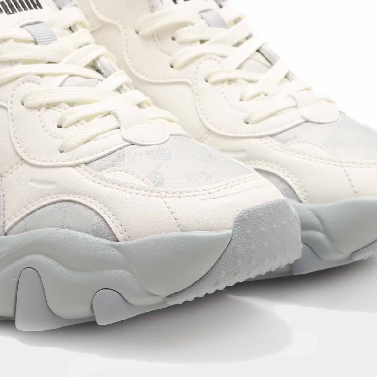 Introducing a NEW DESIGN in atmos pink from ``PULSAR'', which is extremely popular for its bold wedge soles♪ Jacquard is used throughout, making this a unique pair! The entire item is unified in gray tone, making it easy to match with any style, making it perfect for the fall/winter season.The atmos pink logo is featured as a focal point, which is a unique collaboration feature!